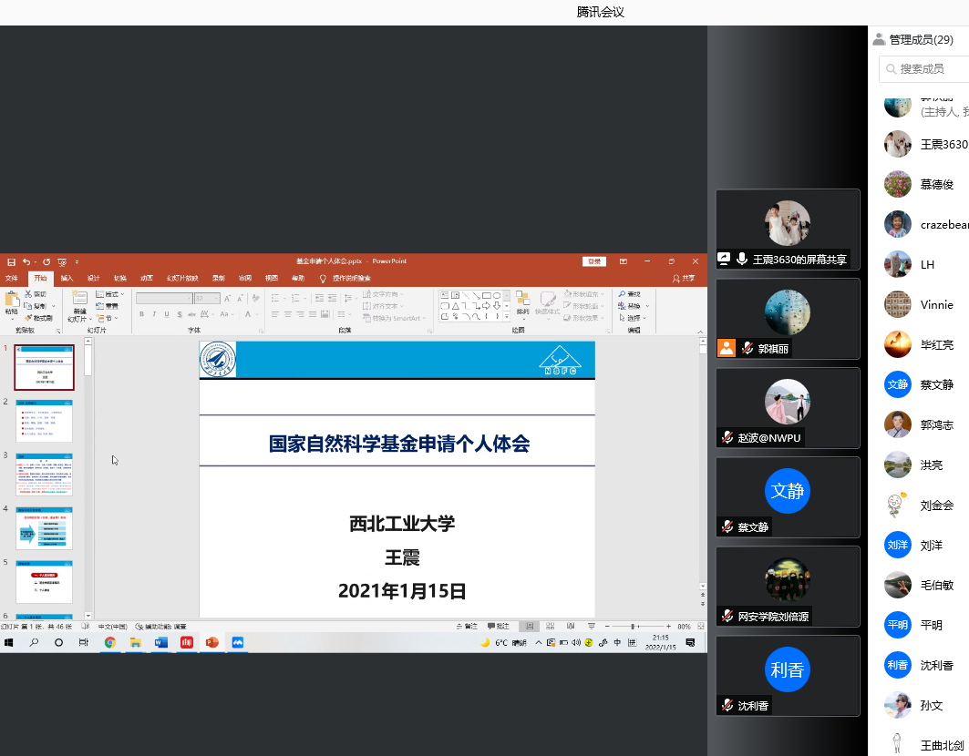 为进一步做好2022年度国家自然科学基金项目申报工作,2022年1月15日,永利yl23411召开了线上会议,由王震书记为教师进行国家自然科学基金项目申报辅导。公司拟申报2022年基金项目的教师参加了本次会议,会议由公司科研副经理慕德俊主持。