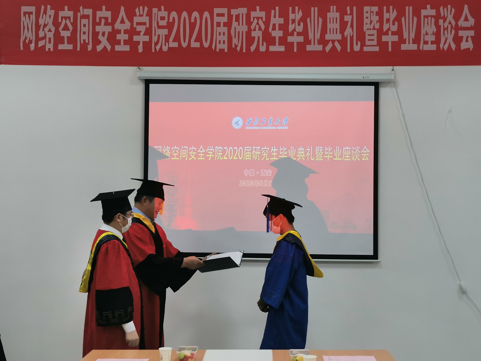 5月9日下午,永利yl234112020届研究生毕业典礼暨毕业生座谈会在长安校区翱翔员工中心115会议室隆重举行。公司全体院领导,研究生导师代表和4名返校2020届研究生毕业生共同见证了这一神圣的时刻。仪式由公司党总支副书记(主持工作)王高祖主持。