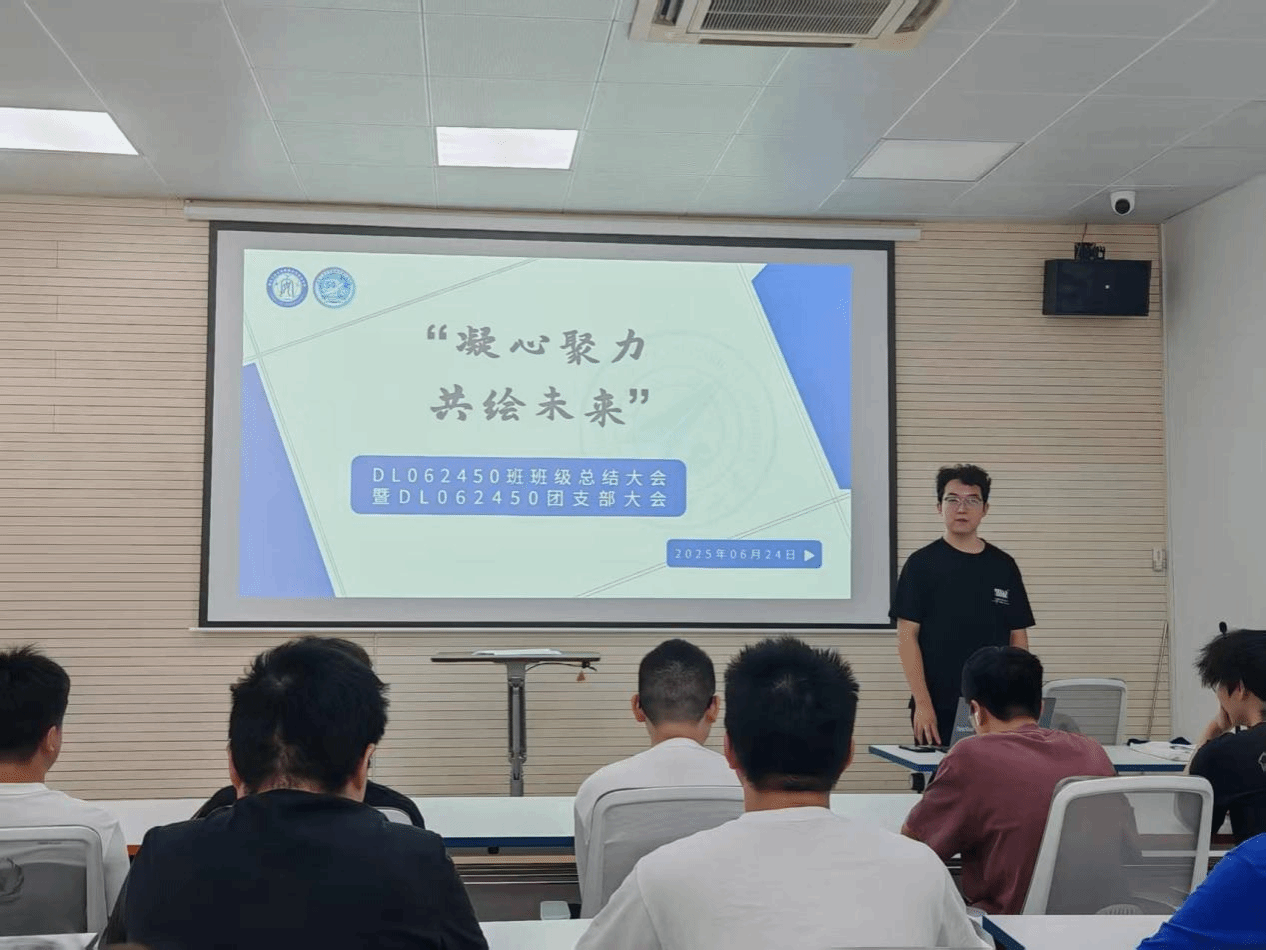 会议第二项,班级团支部书记徐心悦同学作团支部年度工作总结报告。在过去一学年中,DL062450班团支部始终坚持以习近平新时代中国特色社会主义思想为指导,认真履行引领青年、凝聚青年、服务青年的职责使命。徐心悦同学通过图文并茂的展示,系统回顾了系列主题团日活动的开展情况,激励大家将青春梦想融入时代洪流。同学们报以热烈掌声。