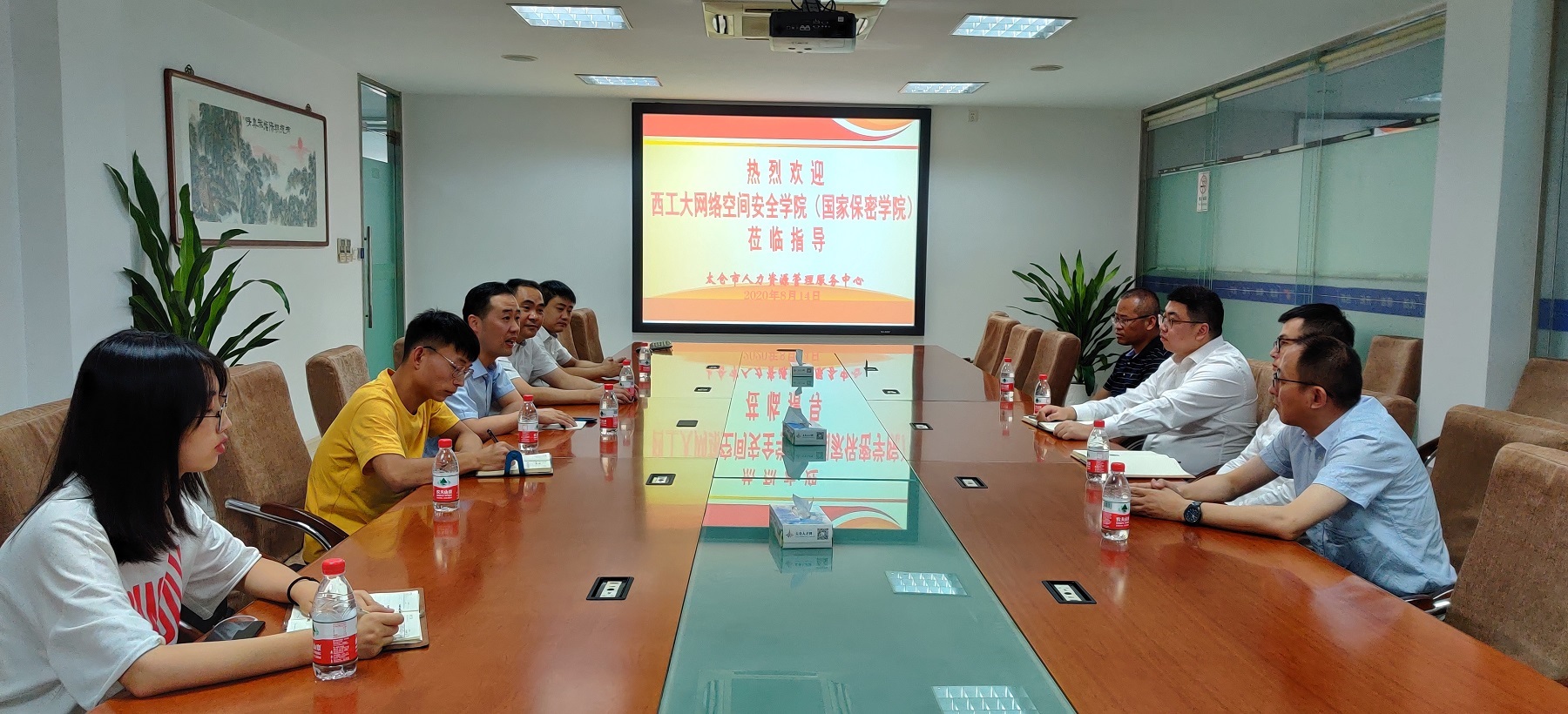 8月14日,调研小组在太仓人力资源管理服务中心与苏州天创公司和太仓安软科技公司进行了座谈交流。太仓人力资源管理服务中心主任陈苍介绍了太仓市情和人力资源概况,两家企业分别介绍了主营业务和未来发展方向,提出了对网络安全人才的需求。网络空间安全公司党总支副书记王宁军介绍了公司基本情况,表示将进一步加深校企交流合作,共同培养优秀网安人才。会上,永利yl23411与两家企业签署了合作协议,共建老员工就业与实习基地。下午,调研组实地走访了安软科技集团,参观了公司产品展厅,并进行了座谈交流。