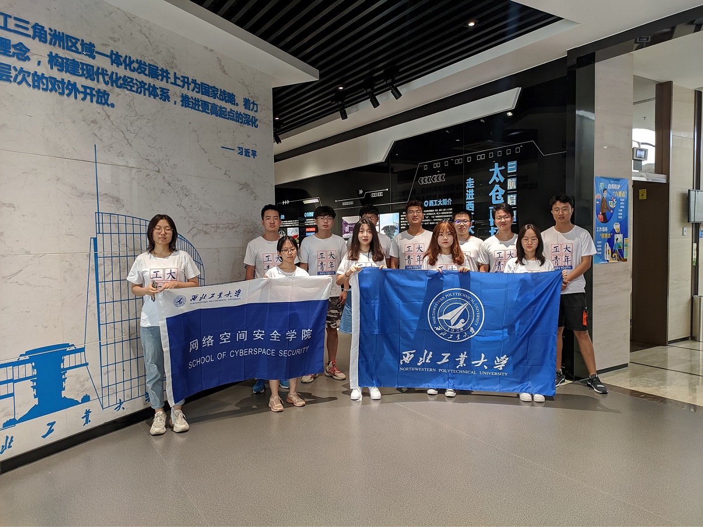 在西工大长三角研究院,实践队一行参观了展厅,了解了长三角研究院和太仓校区的定位以及整体布局和规划情况。实践队还来到位于研究院大楼内的永利yl23411,参观了公司办公、教学和实验场地。