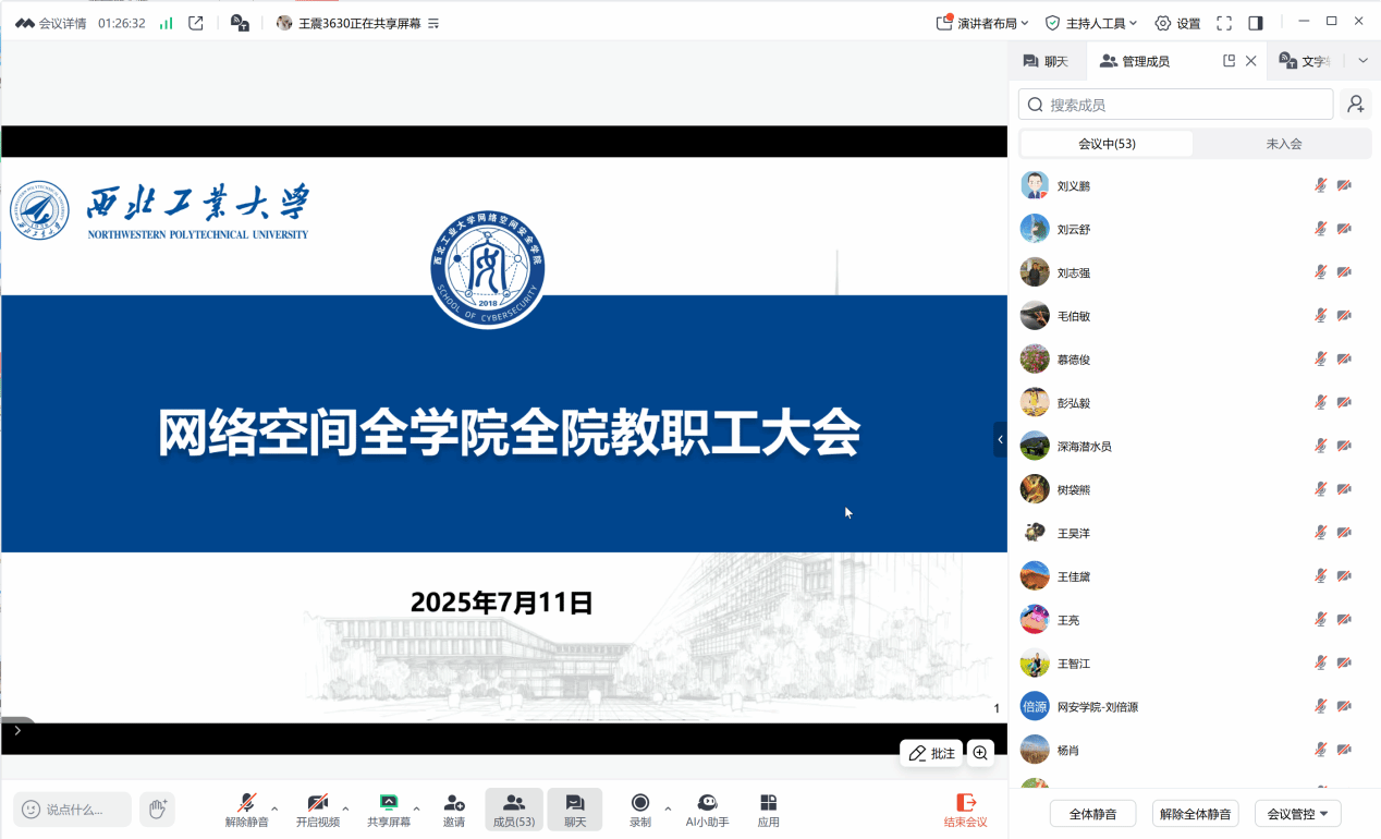 7月11日下午,永利yl23411以线上形式召开了全院教职工大会。此次会议总结了公司上半年工作进展并传达学习公司2025年上半年工作总结会、警示教育会、公司党委书记李言荣专题党课精神,对公司暑期工作和下学期重点工作做出全面安排,公司全体教职工参加了会议,会议由公司党委书记张文涛主持。