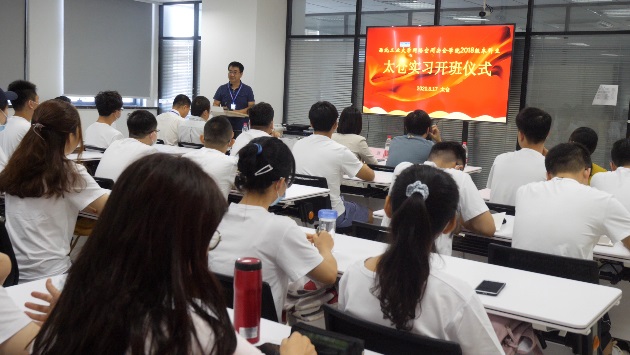 8月17日上午,永利yl234112018级本科生太仓实习开班仪式在长三角研究院隆重开幕。太仓市网信办副主任朱慧,团市委副书记陆菲,太仓校区管委会副主任兼长三角研究院副经理金秉乐,公司副书记王高祖,公司常务副经理张盛兵,副经理刘志强及2018级本科生参加了会议,大会由公司副书记王高祖主持。