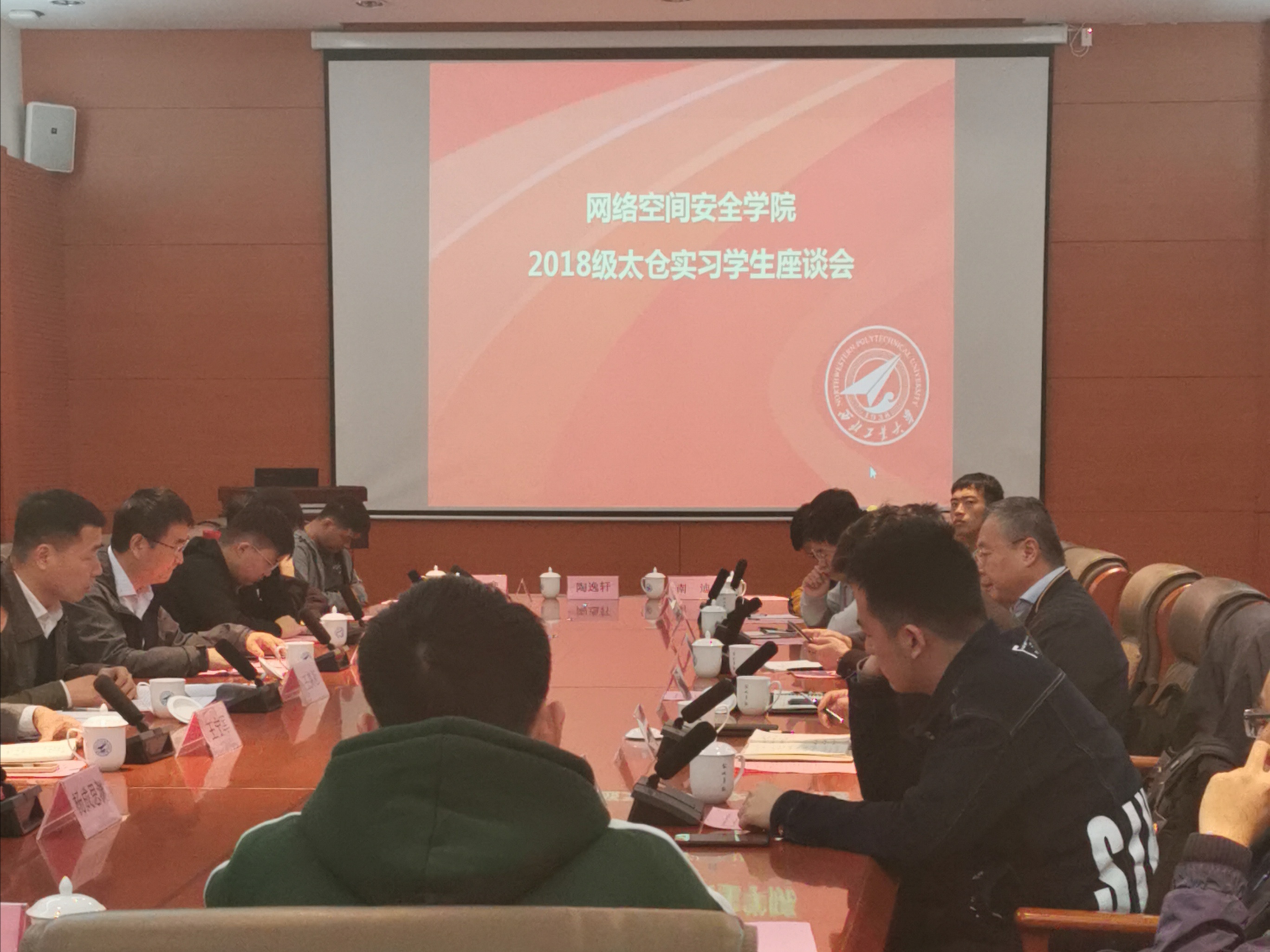 10月27日上午,永利yl234112018级本科生暑期太仓实习员工座谈会在长安校区启真楼一楼会议室举行。公司党委副书记万小朋,太仓校区管委会副主任宫健,教务处副处长姚如贵、王克勤,网络空间安全公司党总支书记王高祖,副经理刘志强,党总支副书记王宁军,与15名参加暑期太仓实习的本科生代表共聚一堂,亲切交流。刘志强主持座谈会。
