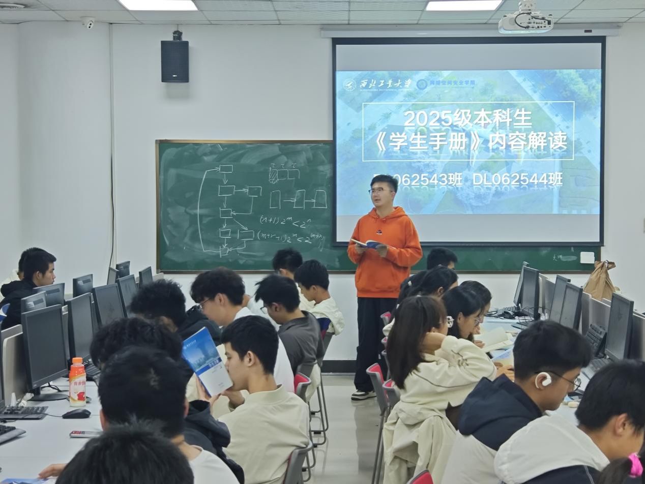 付强围绕《员工手册》的核心内容,从行为准则、学习纪律、毕业条件、违纪处分、奖励资助、公寓管理、体质测试等方面为各班进行了系统、深入的解读。结合往年的典型案例,对重点条款进行了细致的剖析,使同学们对各项规章制度有了更直观、更深刻的理解。讲解过程中,他特别强调了要“主动预防、及时报告、有效沟通”,提醒同学们要时刻绷紧纪律之弦,明确行为边界,规避潜在风险,筑牢个人与集体安全防线。
