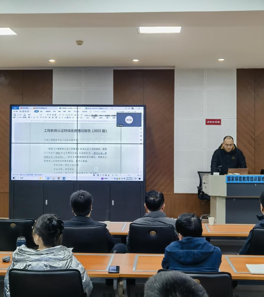 会上,经理助理张慧翔就信息安全专业认证中期审查工作做了专题汇报与详细部署。他系统介绍了认证中期审查的具体要求、时间节点与关键指标,对照认证标准,对当前教学文档规范、持续改进机制、员工成果评价、支撑材料整理等各项任务进行了精细化梳理与分解,明确了责任分工与完成时限。他要求相关教师应高度重视此项工作,以评促建、以评促改,确保高质量通过中期审查,推动专业建设内涵式发展。