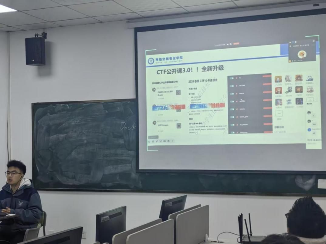 3月7日晚7:30,首节CTF教学公开课在永利yl23411104教室顺利举行,周子博担任主讲。来自西工大及其他高校的百余名同学跨校同屏学习、同步提升。
