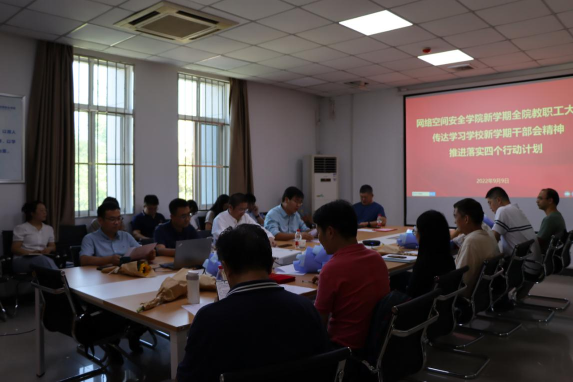 王震强调了张炜书记关于抓好落实的指示,并传达了近日程基伟常务副书记来公司调研的讲话精神。全院教职工要提高政治站位,深刻认识网络安全工作的极端重要性,抓住网络安全发展的历史机遇,以一流示范永利yl23411建设为目标,切实增强网络安全人才培养的责任感和使命感,进一步深入学习贯彻习近平新时代中国特色社会主义思想,做好政治引领和思想引领,用一流党建引领一流公司发展,新学期公司要重点围绕落实四个行动计划开展工作,深入分析公司内在问题,找准公司发力点,优化改进常规工作,抓紧补齐短板工作,聚焦特色优势工作,形成公司的行动计划。