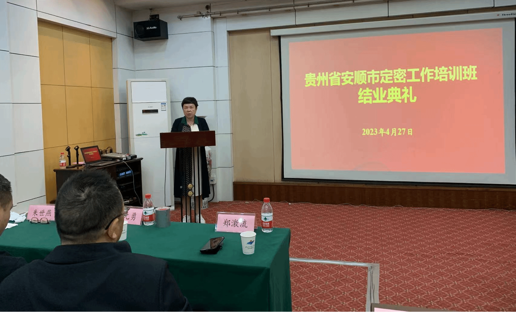 4月27日,在正禾酒店东三会议室举办了贵州省安顺市定密工作培训班结业典礼,结业典礼由本次培训班班主任张勃妮主持。会议第一项由6个小组代表分别发言交流,接着由培训班班长市委办公室市督查督办局副局长朱世燕同志作培训总结汇报,随后罗祝锋副秘书长为各小组颁发结业证书,最后全体参训学员观看了培训期间的剪影。