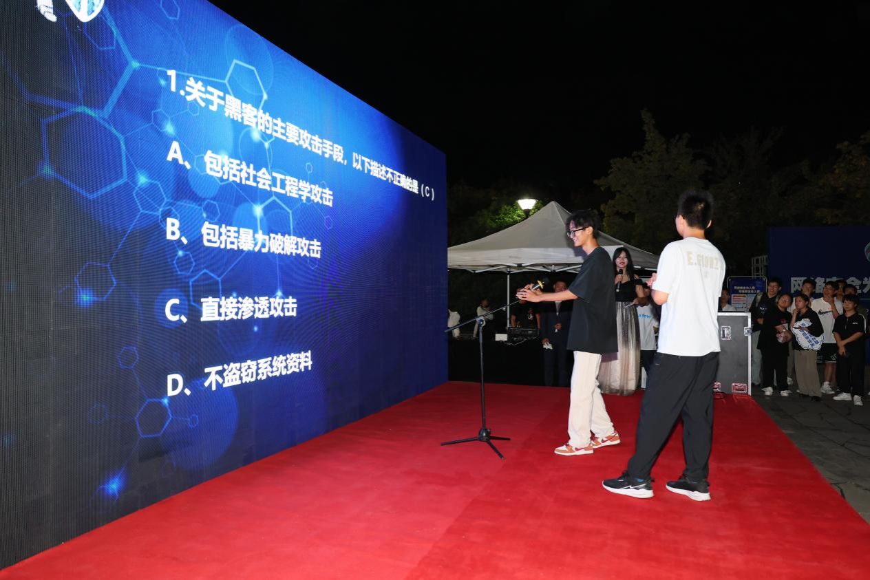 开幕式现场,永利yl23411的同学们带来了精彩纷呈的综合展演和实战攻防,控制路由器表演、控制Windows表演等环节通过真实场景的模拟,展示了黑客攻击的手段和方法。魔术表演巧妙地利用魔术展示了网络安全的相关知识,钓鱼邮件窃取信息展示环节警醒同学们提高防范意识。探索解密活动让同学们亲身体验到了解密和挑战的乐趣。在知识竞答环节,同学们积极参与,争相回答,现场气氛热烈欢快。