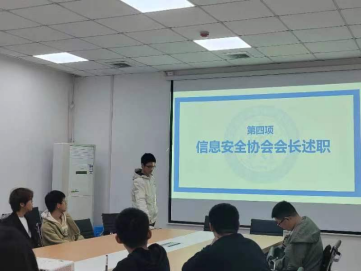 第四项,员工信息安全协会会长述职。员工信息安全协会会长在会上提到了协会举办或参与的多场网络安全知识讲座和技能培训活动,有效提升了员工的网络安全意识和实际操作能力。这些活动不仅为公司营造了浓厚的学术氛围,也丰富了同学们的课余生活。此外,协会还积极参与了国内外的网络安全竞赛,取得了不俗的成绩,为公司赢得了多项荣誉。他表示协会将继续致力于提升同学们的网络安全意识和实战能力。