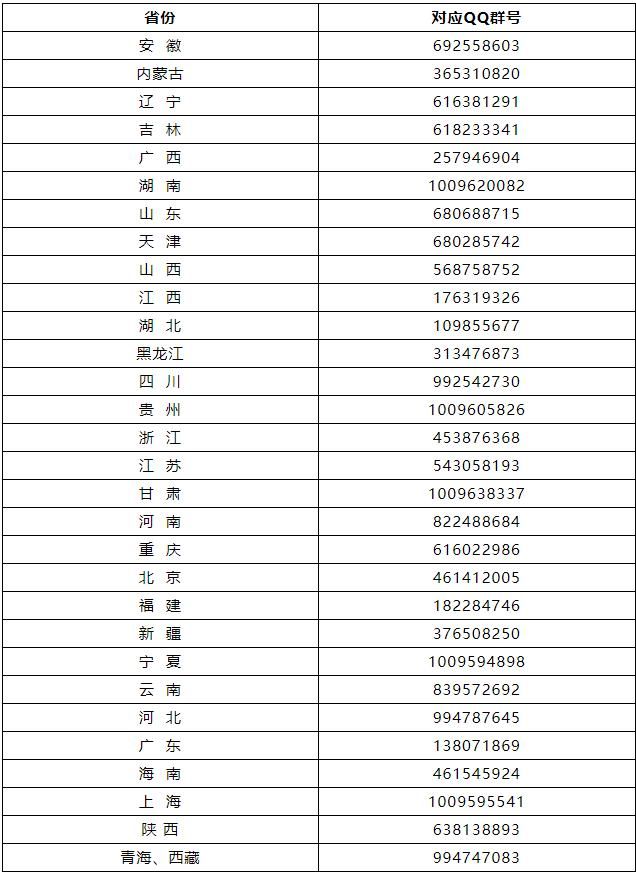 (二)其中“员工大使”招生实践项目由教务部招生办公室组织,各省实践队QQ群号如下: