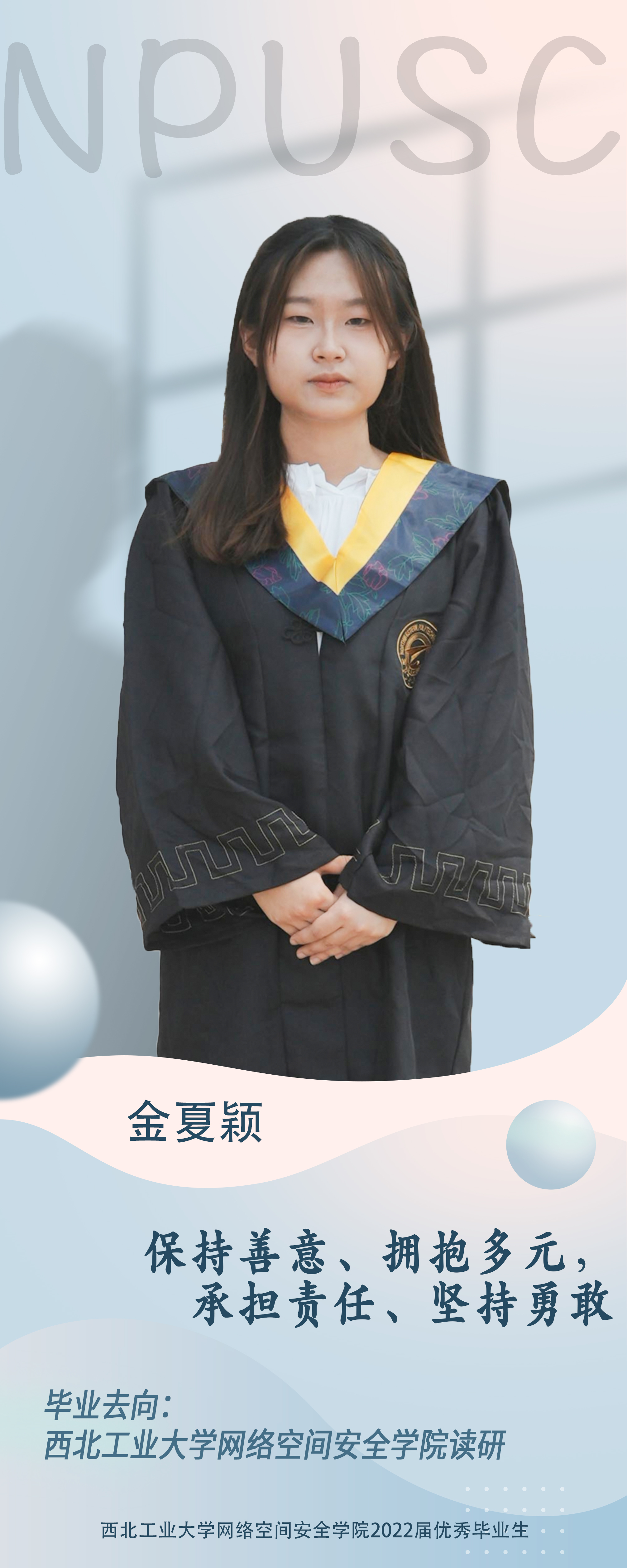 公司2018级本科生金夏颖,曾担任永利yl23411员工会主席团成员、团委副书记,2018级SC011801团支部书记。曾获吴亚军三等专项奖学金1次;校优秀员工2次,院优秀员工1次;大一大二学年连续获得“校优秀共青团员”称号,大三学年获得“校优秀团干部”称号。连续三年担任小班团支书,所在团支部获得一次“先进团支部” 称号(公司唯一),大一学年担任大班团支书,大三学年担任公司团委副书记。累计获得国际性奖项1项,国家级奖项2项,校级奖项8项,中国机器人大赛无人机挑战赛全国一等奖、全国老员工信息安全作品赛一等奖等;积极参加志愿活动,例如“回母校宣讲活动”、“80周年校庆活动”(获得“校优秀志愿者”称号)。