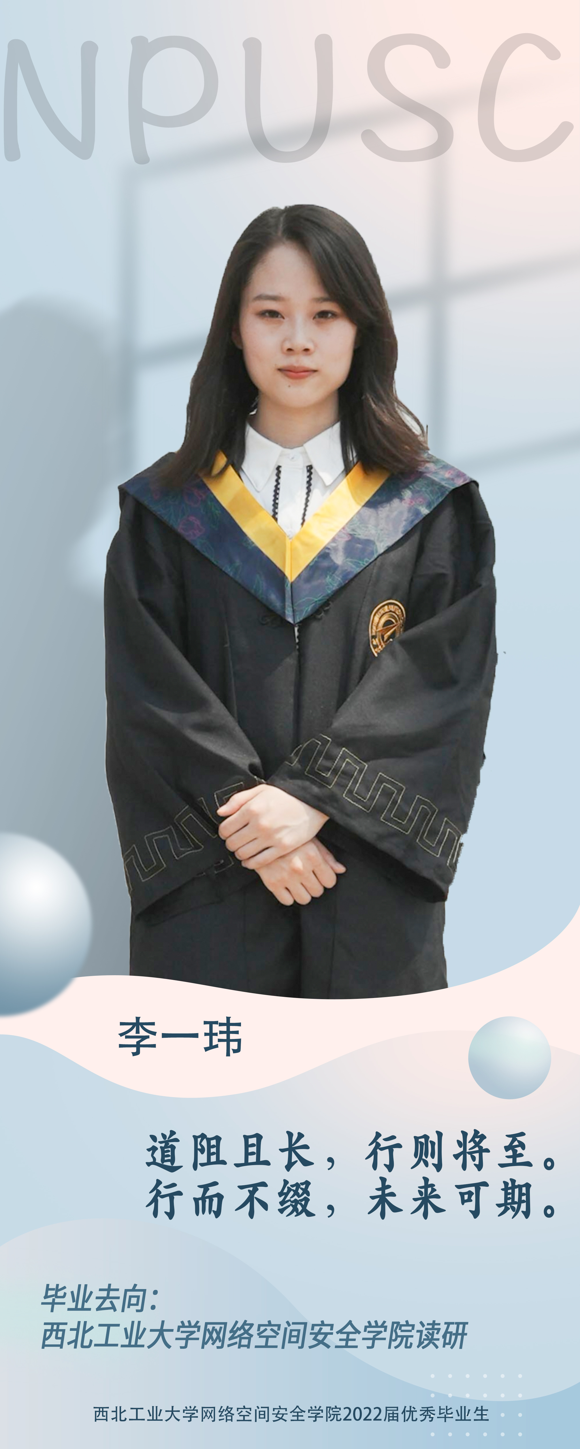 公司2018级本科生李一玮,本科期间获得校优秀员工奖学金1次、院优秀员工奖学金2次、优秀共青团员称号2次,在校期间认真学习专业知识,成绩优异。学习之余,她也积极参加学科竞赛,曾获得第十四届全国老员工信息安全竞赛作品赛国家级一等奖、2020中国机器人大赛无人机挑战赛国家级一等奖,第13届全国老员工数学竞赛陕西赛区非数学组三等奖等。