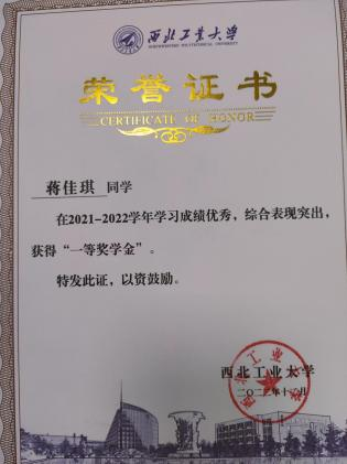 2021年一等学业奖学金