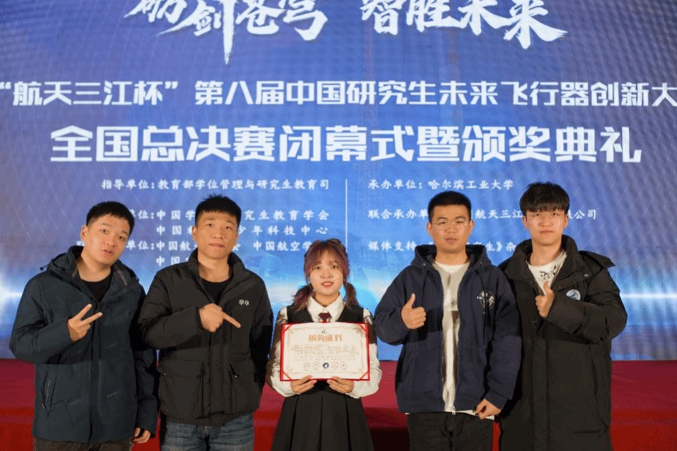 除了在社会工作方面的卓越表现,袁坤焱同学在科技竞赛中也取得了令人瞩目的成绩。作为团队队长,她带领团队参加了第八届中国研究生未来飞行器创新大赛,凭借出色的创新能力和团队协作能力,获得了挑战赛道第一名的优异成绩,为公司争得了荣誉。