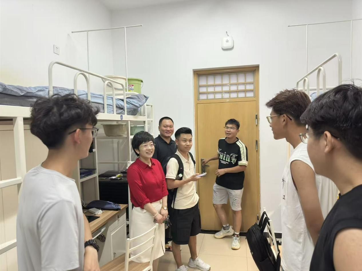 公司领导高度重视新生入学适应情况。迎新期间,张文涛、杜瑶分别带领辅导员、班主任等走访慰问了新生宿舍,与同学们亲切交流,细致询问大家入校后的生活适应情况,耐心解答同学们关于学业、生活等方面的疑问,并鼓励新生尽快转变角色,融入大学集体生活,珍惜舍友缘分,共同营造积极向上的宿舍氛围。