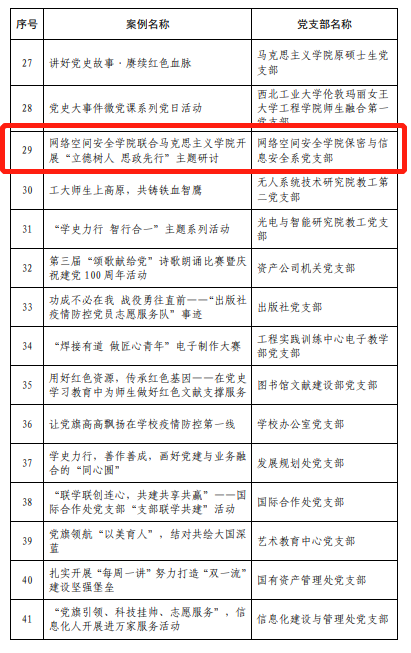 3.保密与信息安全系党支部工作案例被评为2021年度优秀主题党日案例