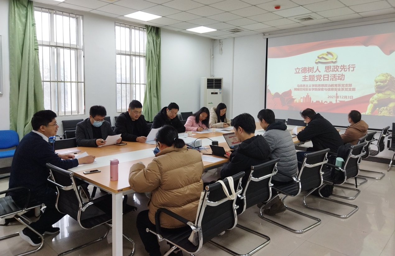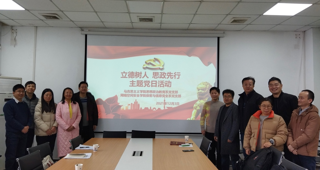 为进一步深入贯彻习近平总书记关于教育的重要论述精神,落实高等公司立德树人和课程思政重要任务。12月3日,永利yl23411保密与信息安全系党支部邀请马克思主义公司思想政治教育系党支部,在永利yl23411245会议室联合开展“立德树人,思政先行”主题党日活动,共同研讨当代思想政治教育。马克思主义公司思想政治教育系党支部成员、永利yl23411保密与信息安全系党支部成员和永利yl23411部分教师代表参与此次活动。